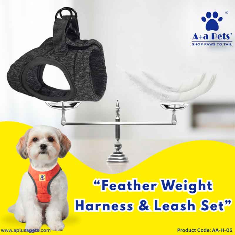 IS THE HARNESS HEAVY?: No, it is a feather weight harness & leash set, keeping in mind our pets soft skin