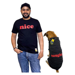 DESIGN DETAILS: 'Nice & Naughty' printed on human & pet t-shirt