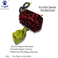 A+a Pets' Sequins Dog Poo Bag Pouch Dispenser- Red - www.aplusapets.com -34%