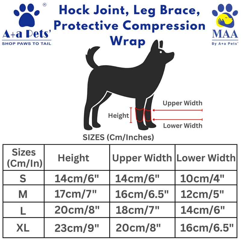 A+a Pets' Hock Joint Protective Wrap Leg Braces for Dogs provide the ultimate protection for your dog joints. The wrap provides targeted support and stability for the hock joint, enabling improved mobility, healing, and overall comfort. Perfect for post-surgery recovery, or for injury prevention.
