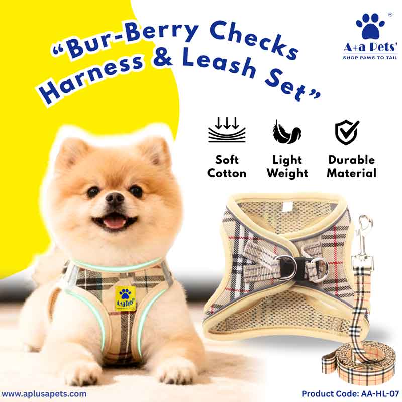 A+a Pets' Bur-Berry Checks Harness & Leash Set for Cats & Dogs