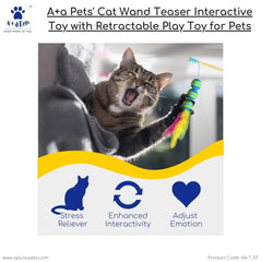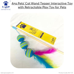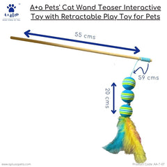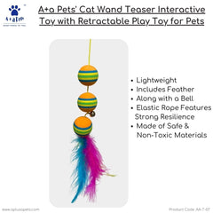 A+a Pets' Cat Wand Teaser Interactive Toy with retractable Feather Ball, the ultimate playtime companion for your cat, puppies, and small animals. This innovative toy provides endless entertainment while stimulating your pet's hunting instincts