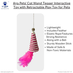 A+a Pets' Cat Wand Teaser Interactive Toy with Feather Cone, the ultimate playtime companion for your cat, puppies, and small animals. This innovative toy provides endless entertainment while stimulating your pet's hunting instincts.