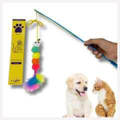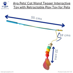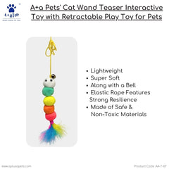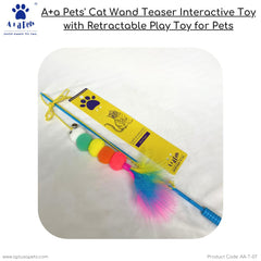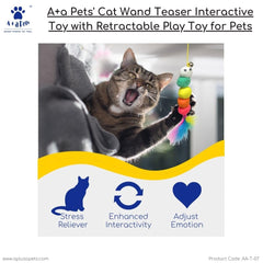 A+a Pets' Cat Wand Teaser Interactive Toy with Feather Pom, the ultimate playtime companion for your cat, puppies, and small animals. This innovative toy provides endless entertainment while stimulating your pet's hunting instincts