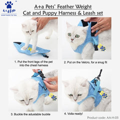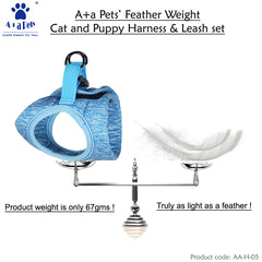 IS THE HARNESS HEAVY?: No, it is a feather weight harness & leash set, keeping in mind our pets soft skin